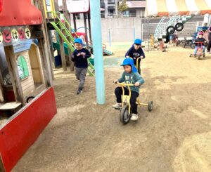 を守るための交通ルールを教えていただきました。年長さんはあと3ヶ月で小学校の「通学」が待っています。今までのことをしっかり思い出して安全に通学できたらいいですね。協会の方、ありがとうございました。
