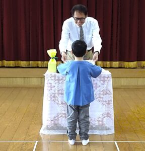 3月20日(祝)の卒園式を待たずして引越しで県外へ行かれる園児さんのために年長さん、年中・年少さんが「ひとり卒園式」をしてくれました。年長さん手作りの修了証(にっこりマークだらけでごめんなさい)や寄書を渡し、卒園の歌を唄い、門出をお祝いしました。むこうに行っても元気で楽しく過ごしてください。ちょっぴり寂しかったけど式のあとは、いつものようにみんな園庭で遊びに夢中になっていました。今日のことが良い思い出になったらいいね。