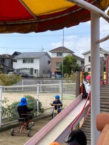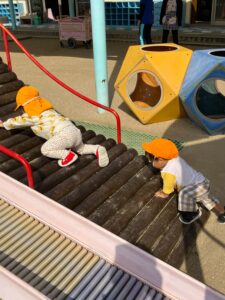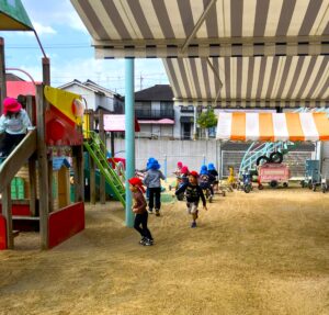 暑さ指数を気にすることなく夢中で外遊びをしています。遊びに夢中になれるってすばらしいですよね。