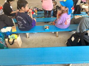 8月の誕生日会はみんなでカキ氷を食べました。食べるころには太陽もさんさんと照り付け、涼がとれて心地良いのかみんな夢中で食べていました。当日の様子は保護者さん専用写真ダウンロードに掲載していますのでお時間のあるときご覧ください。