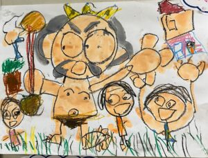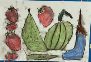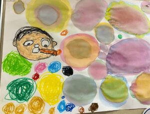 年長さんの自分の自慢の絵ってコーナーの作品を紹介します。それぞれ個性がでていますね。
